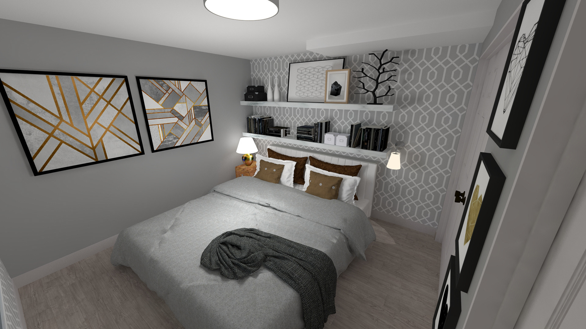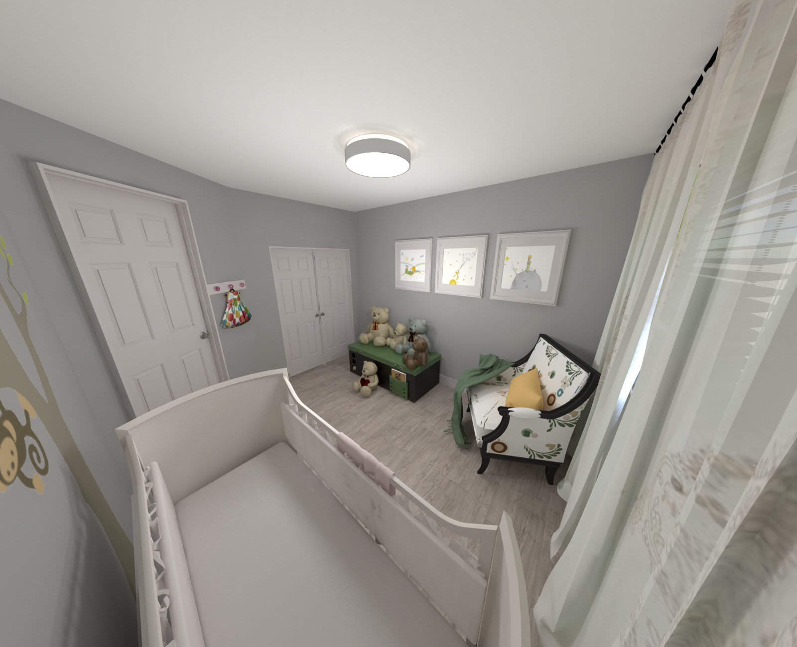 Each bedroom was curated as a personal retreat. The master suite exudes tranquility through layered textiles, gentle lighting, and a subtle mix of textures. The guest and children’s rooms each tell their own story — from golden geometric patterns and warm grey bedding to playful nursery motifs and soft daylight filtering through sheer drapery. Every detail contributes to a balance of comfort, personality, and design intent.