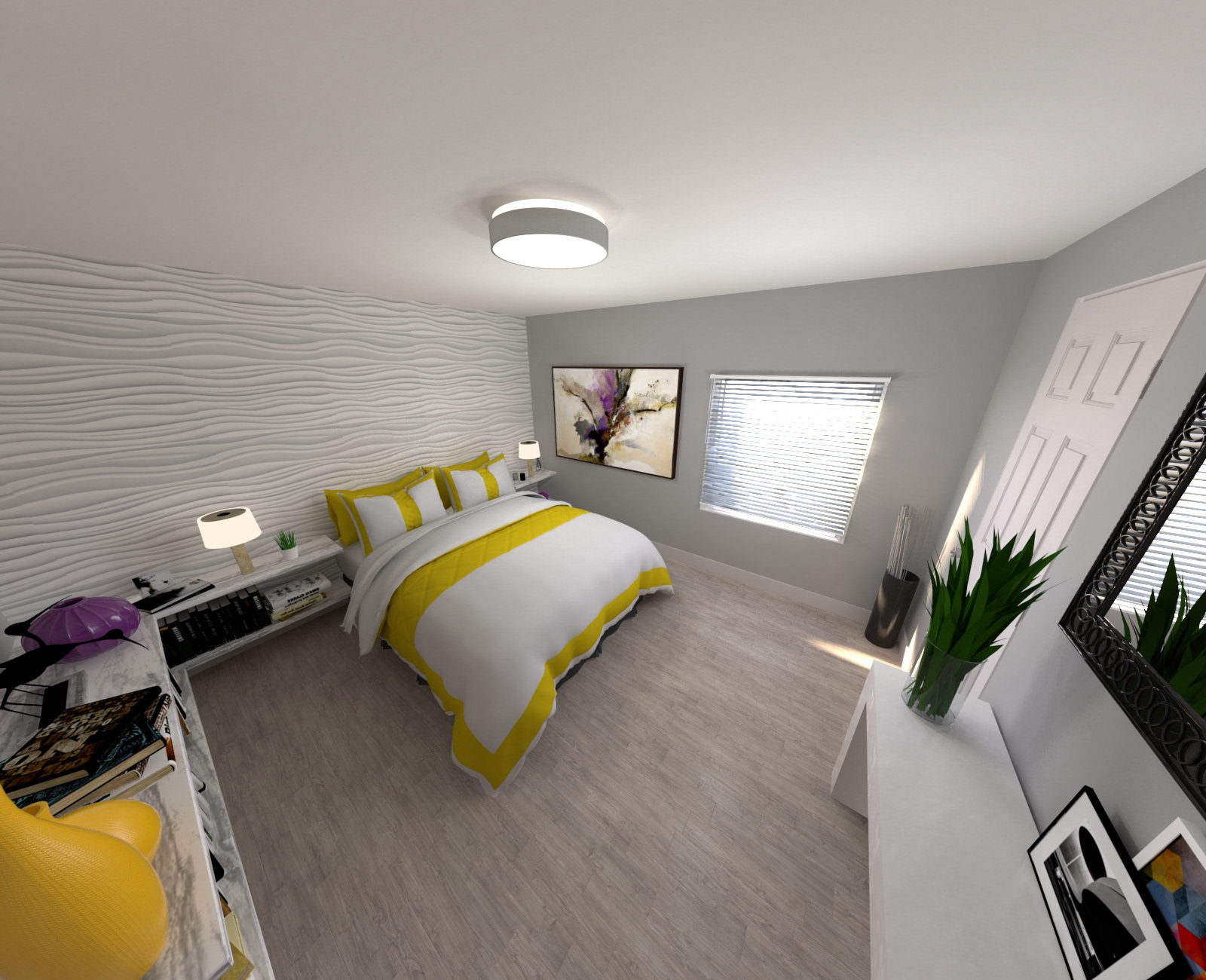 The color palette builds harmony across all levels: soft greys and whites form a calm, contemporary canvas, while accents of citrus yellow, teal, and natural wood introduce a sense of freshness and optimism. Each hue was chosen for its emotional tone — bright but not loud, uplifting without overpowering. The result is a home that feels consistently serene yet joyfully alive.